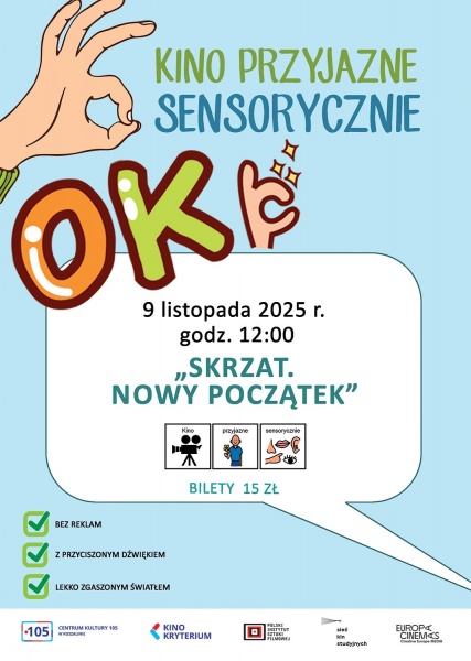 Podczas seansu w Kinie Kryterium: dźwięk będzie nieco ściszony, nie będzie reklam, światło pozostanie lekko przygaszone, nie obowiązuje całkowita cisza ani zakaz poruszania się po sali. To idealne warunki, by każde dziecko mogło poczuć się swobodnie i bezpiecznie, a wspólne kino było przyjemnym doświadczeniem – bez stresu i nadmiaru bodźców.
