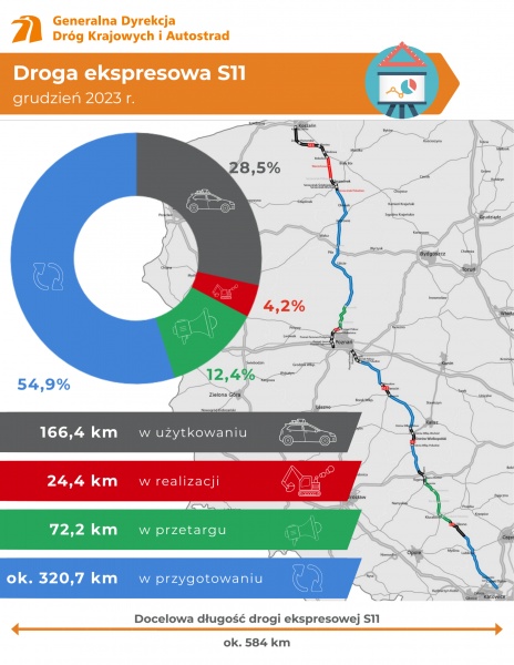 Przetargi będą mogły ruszyć po rozpatrzeniu odwołań dotyczących decyzji środowiskowych dla niektórych odcinków – w tym Szczecinek – Piła oraz Ujście – Oborniki. Pomimo pewnych opóźnień i dyskusji o przebiegu trasy, to bardzo ważny sygnał – S11 wchodzi w kolejny etap realizacji, co oznacza lepsze połączenie komunikacyjne Pomorza z centrum kraju. Obecnie trwa budowa odcinka Szczecinek – Bobolice, którego zakończenie planowane jest na jesień 2026 roku. Z kolei obwodnica Obornik ma być gotowa w roku 2029. Trwa procedura uzyskania zezwolenia na realizację inwestycji drogowej (ZRID) dla budowy 22-kilometrowego odcinka S11 Oborniki - Poznań. Planowany termin uzyskania decyzji to I połowa 2026 roku. Dotychczas przeprowadziono prace geologiczne, które miały na celu zbadanie podłoża. Wstępne prace archeologiczne (rozpoznanie) zostało wykonane. Teraz czas na  badania wykopaliskowe. Rozpoczną się również prace związane z wycinką drzew kolidujących z inwestycją. Będę one realizowane, z zgodnie z zapisami decyzji o środowiskowych uwarunkowaniach, poza sezonem lęgowym.