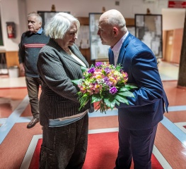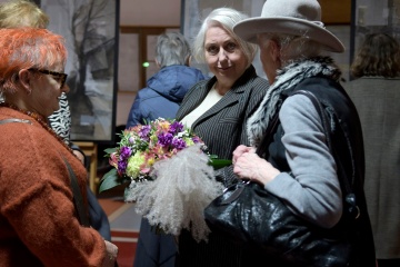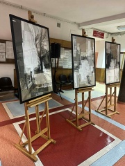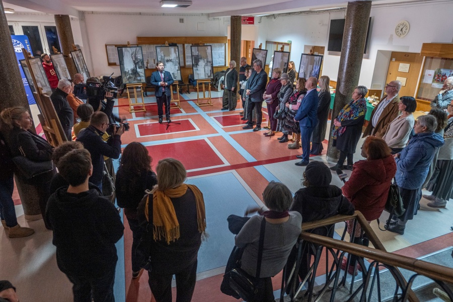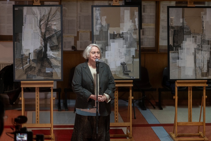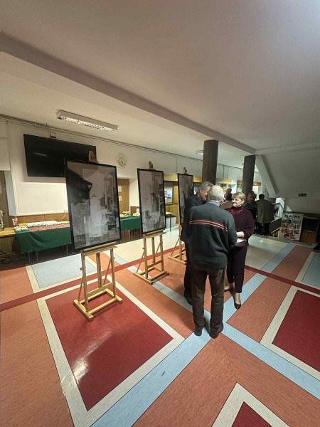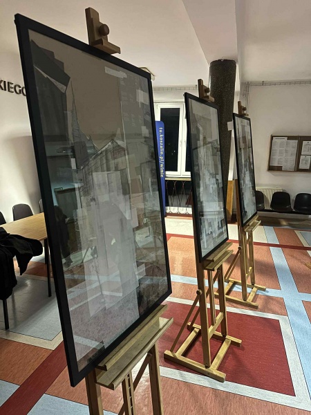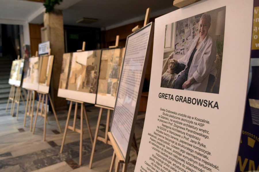 Kulminacją wieczoru był wernisaż wystawy Grety Grabowskiej „Pustka i Światło” w holu głównym Politechniki Koszalińskiej. Artystka zaprezentowała dwanaście sepiowych kolaży – metaforycznych pejzaży miejsc, gdzie niegdyś stały synagogi Pomorza.