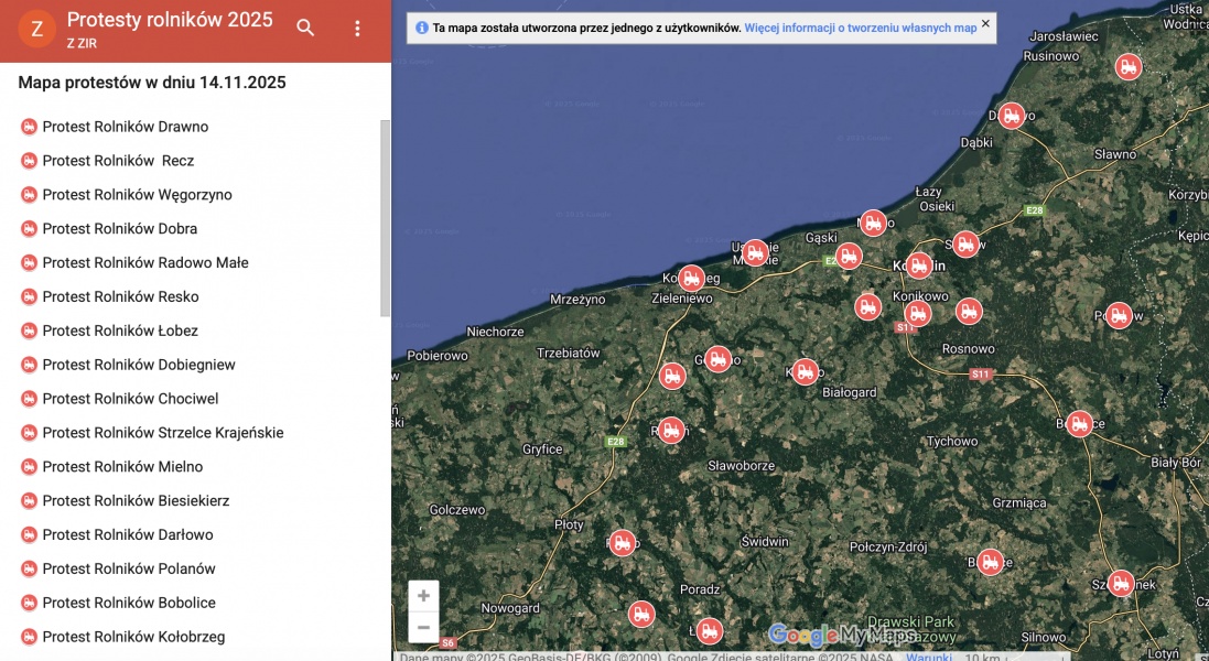 Zachodniopomorska Izba Rolnicza opublikowała interaktywną mapę miejsc, gdzie zaplanowane są akcje. Link do mapy TUTAJ. Lista cały czas się wydłuża i jest aktualizowana na bieżąco. Na ten moment potwierdzone są protesty m.in. w miejscowościach: