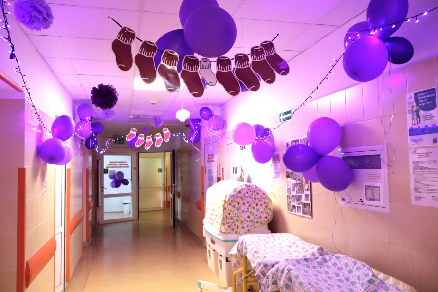 Fioletowe dekoracje i wspomnienia najmłodszych pacjentów