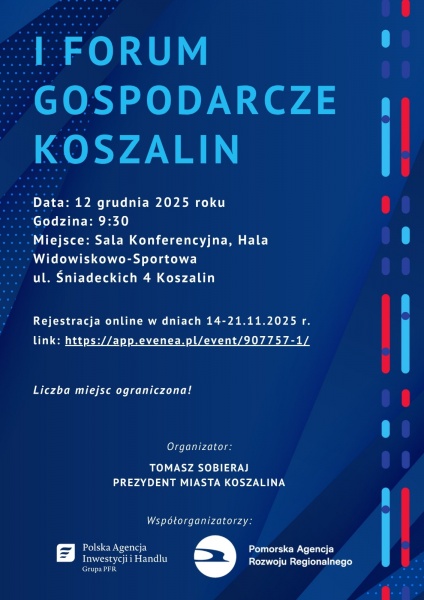 Jak zaznacza prezydent Sobieraj, celem Forum jest stworzenie przestrzeni, w której lokalny biznes poczuje swoją siłę, będzie mógł wymieniać doświadczenia i współtworzyć przyszłość koszalińskiej gospodarki.