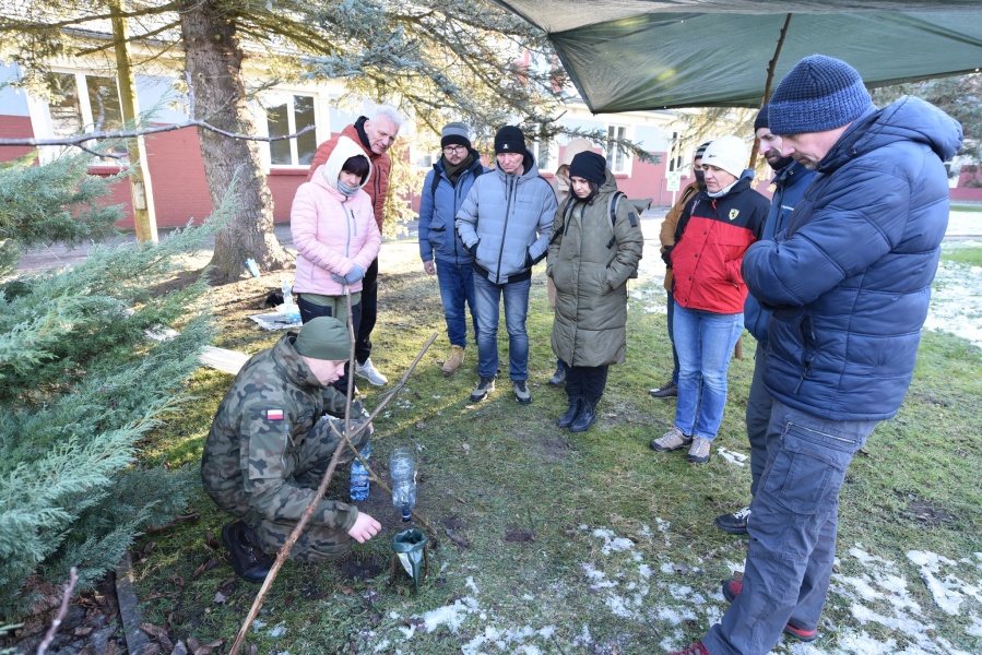 Instruktorzy omawiali procedury reagowania na zagrożenia, podstawy ewakuacji, organizację miejsca schronienia, sposoby oceny ryzyka oraz praktyczne zasady bezpieczeństwa.