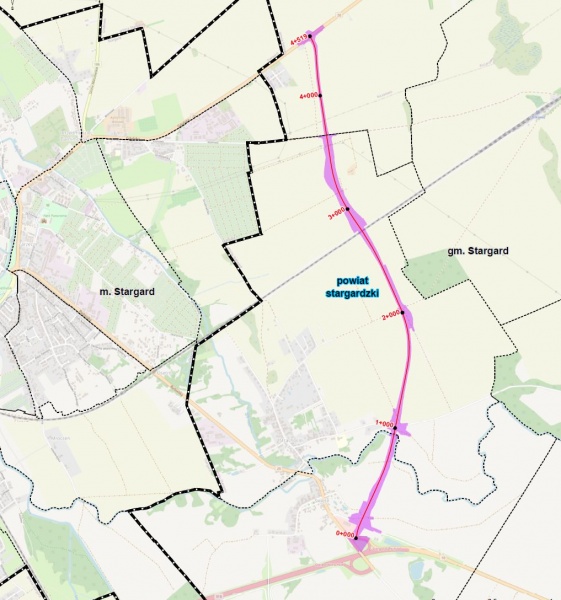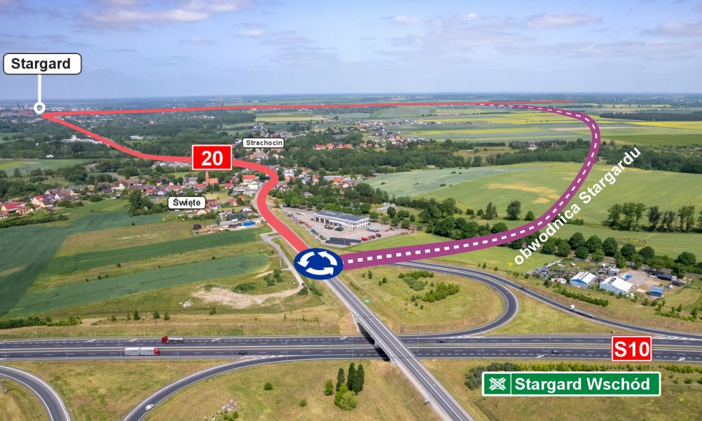 włączenie do obecnego przebiegu DK20 około 500 m za granicą Stargardu.