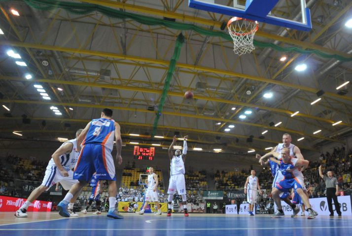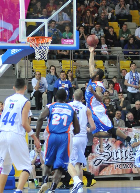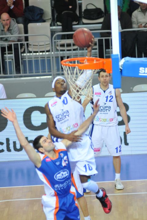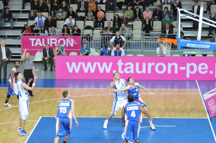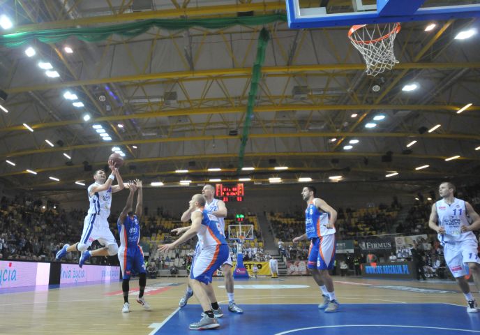 Biało-niebiescy przez pierwszą połowę grali ospałą koszykówkę zarówno w ataku, jak i w obronie. Podopieczni Wojciecha Kamińskiego wykorzystywali każdy błąd miejscowych i zamieniali je na punkty. Z pewnością te akcje podcięły skrzydła akademikom i przez pierwszą połowę nie prezentowali koszykówki, jaką pokazali chociażby w ostatnim meczu z Asseco Prokomem.