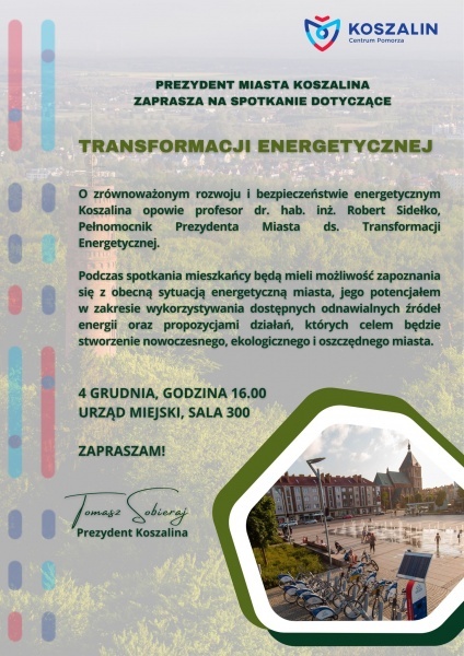 Transformacja energetyczna to jeden z najważniejszych kierunków rozwoju Koszalina w kolejnych latach. Dzisiejsze spotkanie to szansa, by wspólnie z ekspertami rozmawiać o zmianach, które zadecydują o jakości życia, kosztach energii i klimacie w mieście.
