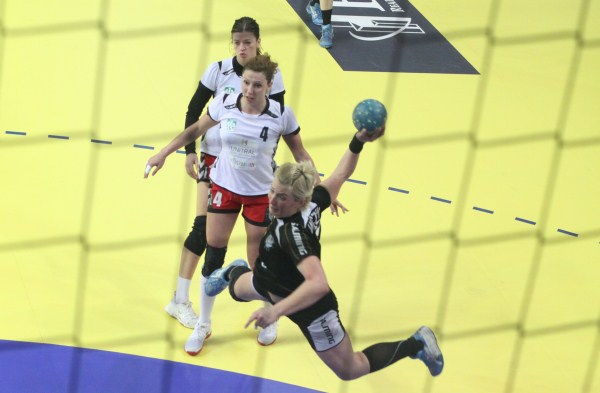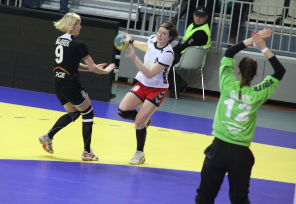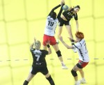 Dorota Małek rzuca, broni Shywerska, ale dobitka skuteczna.