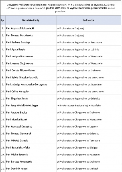 Powołanie w Koszalinie – decyzja Prokuratora Generalnego