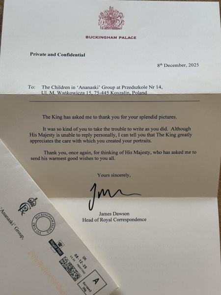 W otrzymanym liście podkreślono, że Król poprosił o przekazanie wdzięczności za „wspaniałe rysunki”. Zwrócono też uwagę na to, jak wiele troski i uważności widać w przygotowanych przez dzieci portretach. Jednocześnie poinformowano, że Jego Królewska Mość nie jest w stanie odpowiadać osobiście na każdy list, ale docenia wysiłek włożony w przygotowanie prac i przesyła przedszkolakom najserdeczniejsze życzenia.