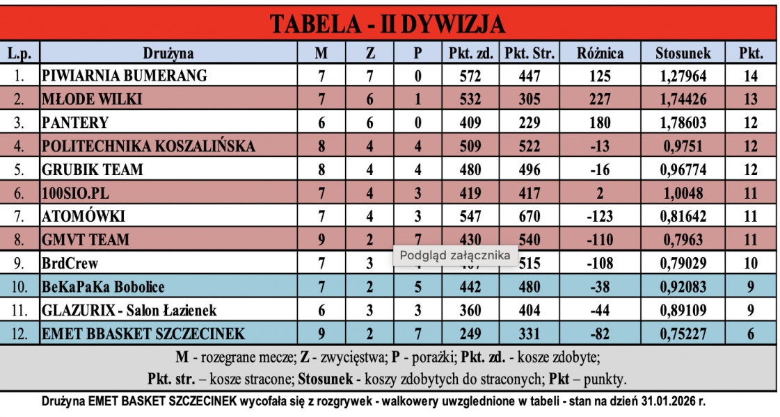W II Dywizji GMVT Team przegrał z Grubik Team 59-69. Zwycięzcy osiągnęli swój sukces dzięki wielkiej zespołowości, bo 21 asyst w meczu, to sporo osiągnięcie. I na koniec Atomówki pokonały Politechnikę Koszalińską 79-77, po meczu pełnym walki i ambicji. Studenci niestety nie wykorzystali swojej przewagi fizycznej i po nerwowej końcówce schodzili z parkietu pokonani.