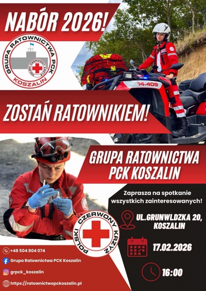 Szczegóły naboru oraz informacje o działalności Grupy Ratownictwa PCK Koszalin dostępne są na stronie: