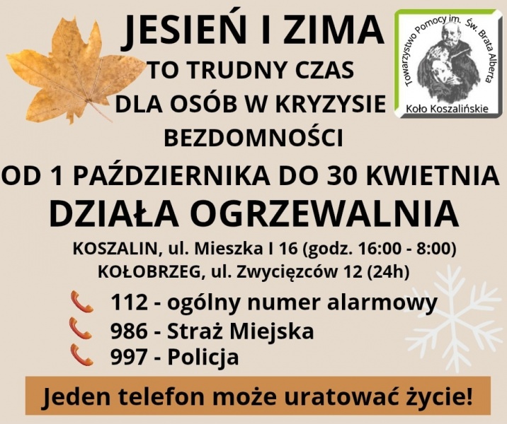 W okresie zimowym na ulice Koszalina wyjeżdża także mobilny punkt organizowany wspólnie przez Centrum Usług Społecznych oraz koszalińskie koło Towarzystwa Pomocy im. św. Brata Alberta. Bus pojawia się dwa razy w tygodniu, docierając do osób potrzebujących.