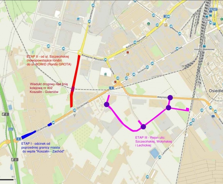 Budowa łącznika to tylko część większego projektu drogowego obejmującego ul. Szczecińską oraz teren strefy ekonomicznej. Inwestycja została podzielona na trzy etapy: