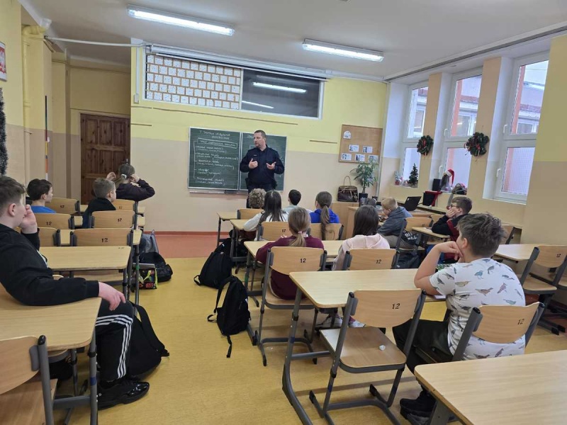 Uczniowie usłyszeli również, do kogo mogą zwrócić się o wsparcie, gdy sami znajdą się w trudnej sytuacji. Policjanci podkreślali, jak ważne są rozmowa i szybkie zgłoszenie problemu dorosłym. Wskazywali, że pomocą mogą służyć rodzice lub opiekunowie, nauczyciele i wychowawcy, pedagog lub psycholog szkolny i funkcjonariusze Policji.