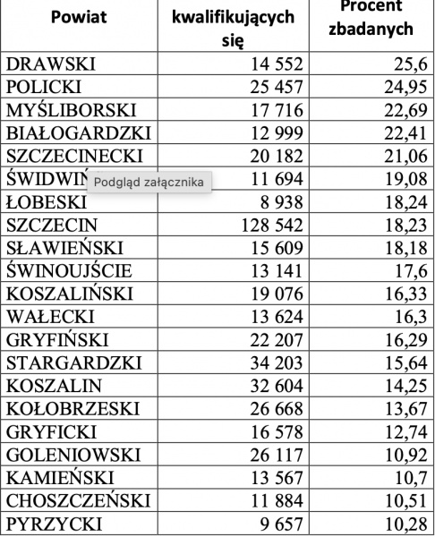 Województwo zachodniopomorskie. Realizacja w powiatach.