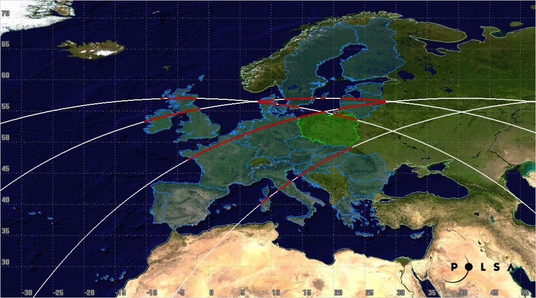 Możliwe okno przelotu nad linią brzegową Bałtyku: 08:53:56–08:54:41 UTC, czyli 09:53:56–09:54:41 czasu polskiego.