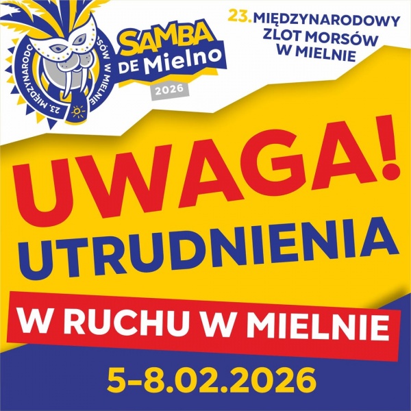 W dniach 05–07.02 odbędzie się SAMBODROM DE MIELNO z Radio ESKA. W tym czasie ul. Wojska Polskiego (od ul. Parkowej do Promenady) będzie całkowicie zamknięta dla pojazdów w godzinach: