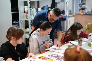 Tym razem odwiedziliśmy uczestników w pracowni plastycznej, gdzie czas upłynął w naprawdę kreatywnym tempie. Dzieci i młodzież próbowali swoich sił w malowaniu, rysowaniu oraz tworzeniu prac z wykorzystaniem materiałów do wyklejania. Było kolorowo, pracowicie i radośnie. A efekty? Mnóstwo świetnych prac i jeszcze więcej dumy z własnej twórczości.