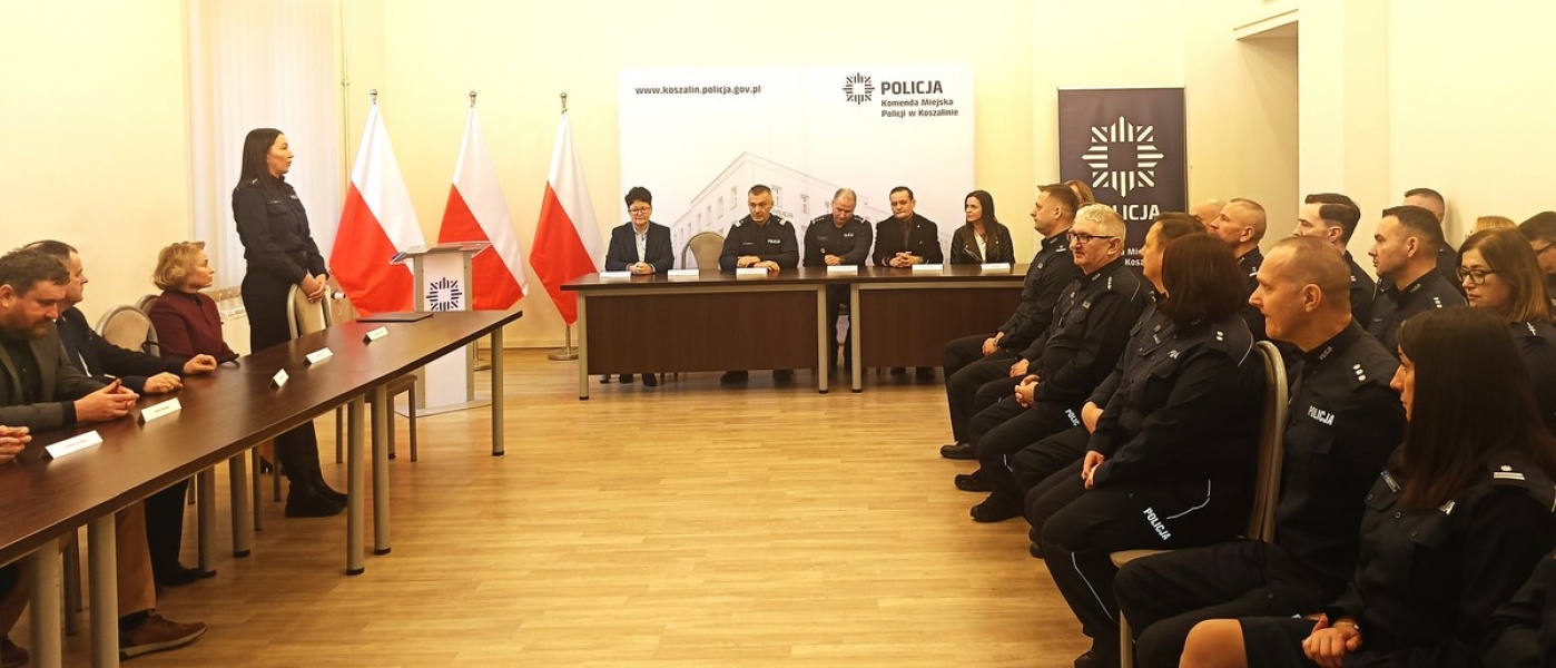 We wszystkich działaniach na rzecz poprawy bezpieczeństwa, stałym, sprawdzonym partnerem jest współpracująca z koszalińską jednostką Szkoła Policji w Słupsku. W ubiegłym roku koszalińska komenda, kilkukrotnie wspierana była przez łącznie 356 słuchaczy ze Szkoły Policji, którzy na terenie miasta i powiatu odbyli ponad 80 służb. Na chwilę obecną Komenda Miejska Policji w Koszalinie ma 351 etatów i 5 wolnych wakatów. Jak powiedział insp. Krzysztof Sieląg, prowadzone działania procesowe i operacyjne pozwoliły na osiągnięcie rezultatów w postaci zatrzymań realizowanych przez Policjantów z Wydziału ds. Przestępstw Gospodarczych, osób, które posiadały oraz wprowadzały do obiegu tytoń bez polskich znaków akcyzy oraz odzyskali i zabezpieczyli sztabkę złota i kolekcjonerskie złote monety, które zostały wyłudzone za pośrednictwem oszustwa inwestycyjnego.