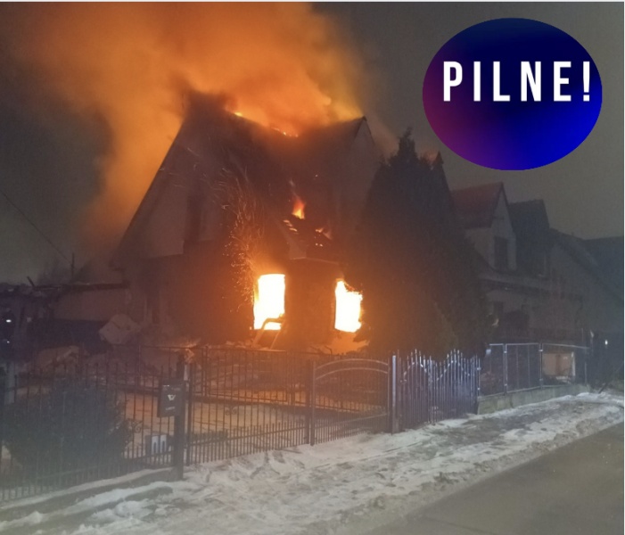 Na miejsce skierowano pięć zastępów straży pożarnej. Z przekazywanych informacji wynika, że budynek został objęty pożarem w całości, co świadczy o bardzo dynamicznym rozwoju ognia i dużym zagrożeniu dla mieszkańców.