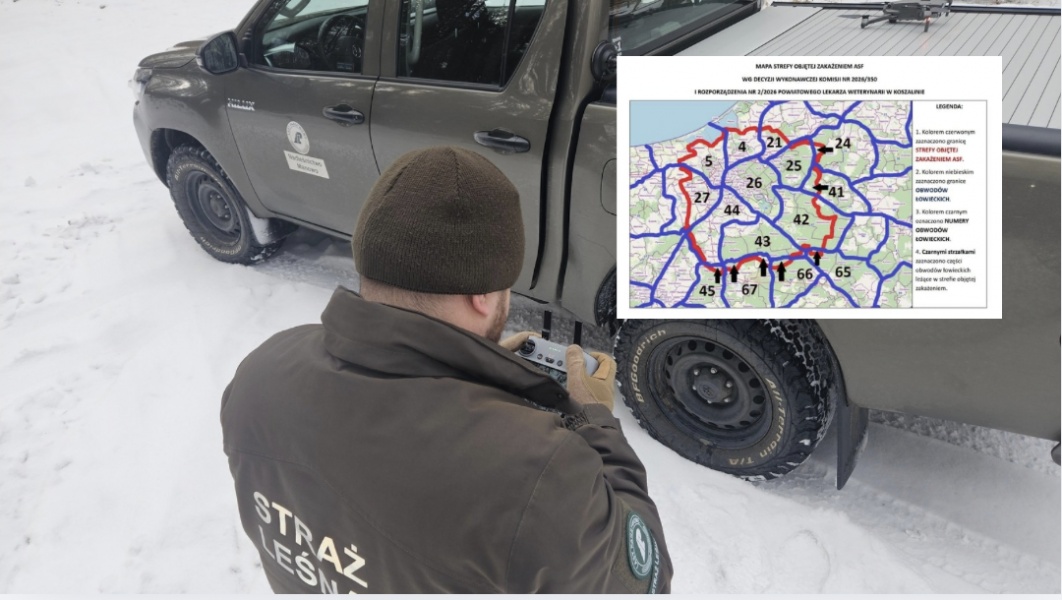 Na prośbę Powiatowego Inspektoratu Weterynarii w Koszalinie przekazano informację, że w Dzienniku Urzędowym Województwa Zachodniopomorskiego (poz. 778) opublikowano 18 lutego 2026 r. rozporządzenie nr 2/2026 Powiatowego Lekarza Weterynarii w Koszalinie z dnia 16 lutego 2026 r., zmieniające rozporządzenie nr 1/2026 z dnia 4 lutego 2026 r. Nowelizacja dotyczy m.in. zmiany granic strefy objętej zakażeniem ASF u dzików na terenie powiatu Miasto Koszalin. Dodatkowo przekazano do wiadomości decyzję wykonawczą Komisji (UE) 2026/350 z dnia 11 lutego 2026 r., w której ustanowiono w Polsce „strefę objętą zakażeniem” opisaną w załączniku do decyzji. Obszar strefy określony w rozporządzeniu nr 2/2026 jest tożsamy z obszarem wskazanym w decyzji Komisji.