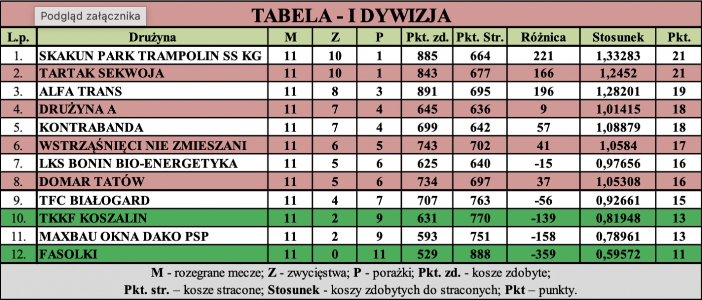 Drużyny, które zajmą 11 i 12 miejsce automatycznie opuszczają I Dywizję.