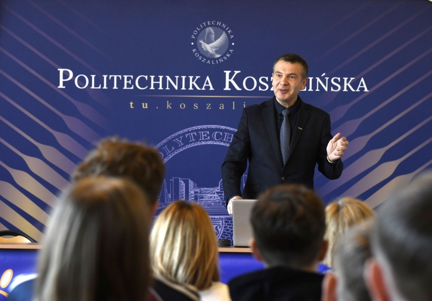 Dopełnieniem inauguracji był wykład dziekana Wydziału Nauk Ekonomicznych Politechniki Koszalińskiej dr. hab. Grzegorza Przekoty, prof. PK, który pokazał, jak matematyka pomaga inwestorom oceniać ryzyko. To kolejny dowód na to, że liczby rządzą nie tylko w klasie, ale również w świecie finansów, biznesu i codziennych decyzji.