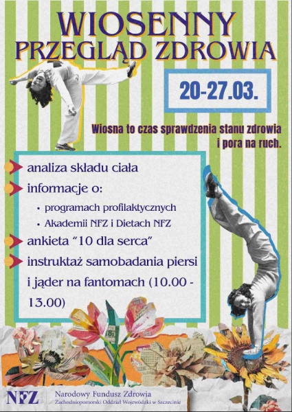 Wiosenny Przegląd Zdrowia to dobra okazja, aby poświęcić chwilę sobie, skorzystać z bezpłatnych porad i badań oraz zdobyć wiedzę, która może pomóc w codziennym dbaniu o zdrowie. To także zachęta, by wiosnę rozpocząć od świadomej troski o własny organizm