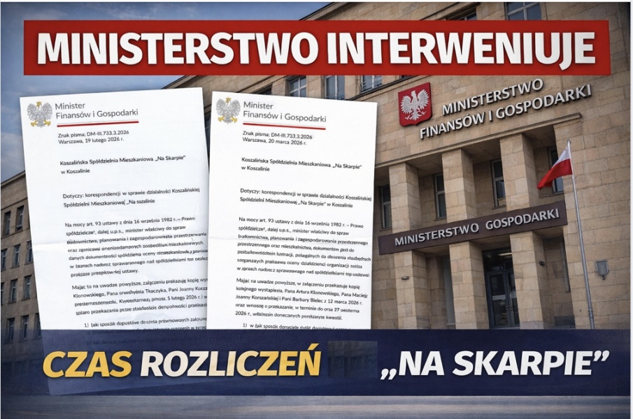 Chcąc ustalić aktualny stan sprawy zwróciliśmy się do Ministerstwa Rozwoju Technologii. W odpowiedzi Biura Obsługi Medialnej.ministerstwa potwierdzoło, że w związku z zarzutami podnoszonymi przez członków wobec Spółdzielni Mieszkaniowej „Na Skarpie” w Koszalinie, w Ministerstwie Rozwoju i Technologii zostało podjęte postępowanie na podstawie art. 93a ustawy – Prawo spółdzielcze.