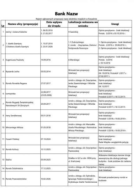 Koszaliński Bank Nazw TUTAJ.