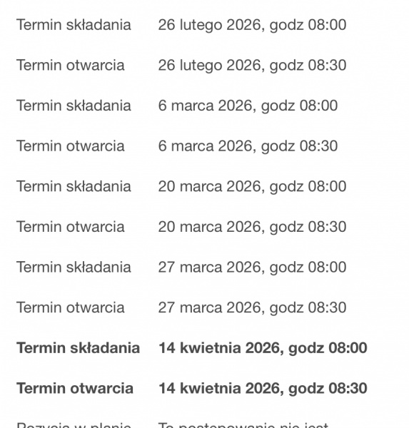 Przypomnijmy, to trzecie już postępowanie w tej sprawie. Dwa poprzednie przetargi zakończyły się bez rozstrzygnięcia, bo proponowane kwoty znacznie przekraczały możliwości miasta. W jednym przypadku cena była ponad dwukrotnie wyższa od szacunków. W trakcie ostatniego postępowania wykonawca Eneris Re‑Energia złożył odwołanie do Krajowej Izby Odwoławczej, zarzucając PGK, że specyfikacja jest tak skonstruowana, iż eliminuje potencjalnych oferentów. Gdy skarga została wycofana, ogłoszono kolejny termin otwarcia ofert, i właśnie ten, piąty z kolei, udało się dotrzymać. Od lutego przesuwano go z 26 lutego na 6, 20 i 27 marca, aż wreszcie na 14 kwietnia – cztery korekty w ciągu dwóch miesięcy.