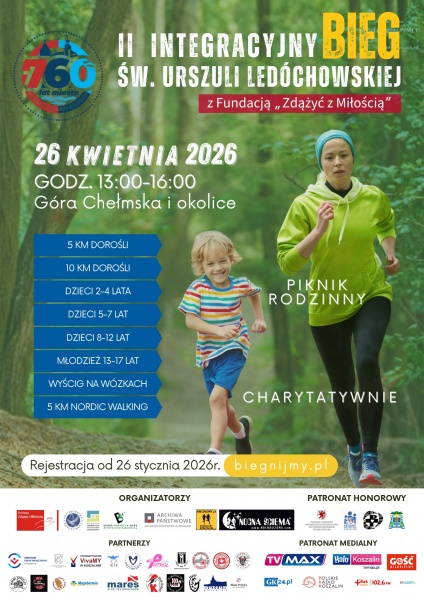 Dzień później, 26 kwietnia 2026 roku, w niedzielę, w godz. 13:00–16:00, w okolicach Góry Chełmskiej odbędzie się II Integracyjny Bieg św. Urszuli Ledóchowskiej wraz z Piknikiem Rodzinnym. Wydarzenie organizowane jest przez Fundację „Zdążyć z Miłością”, która chce poprzez sport i wspólne spotkanie integrować różne grupy społeczne – osoby z niepełnosprawnościami, seniorów, kobiety, mężczyzn, dzieci i młodzież.