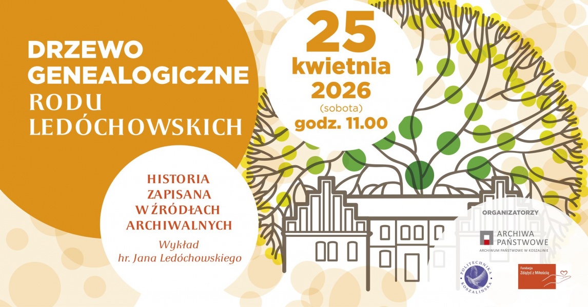 Obchody rozpocznie wykład hr. Jana Ledóchowskiego pt. „Drzewo genealogiczne rodu Ledóchowskich”, który odbędzie się 25 kwietnia 2026 roku, w sobotę, o godz. 11:00 w siedzibie Archiwum Państwowego w Koszalinie przy ul. Marii Skłodowskiej-Curie 2.