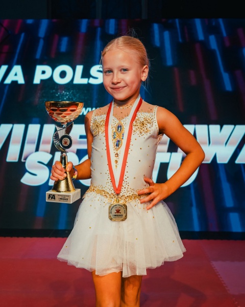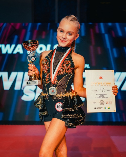Świetnie zaprezentowała się również Nela Kierzek, która zdobyła tytuł Mistrzyni Polski Fit Kids w kategorii 8 lat. Dodatkowo wywalczyła miejsce na podium jako II Wicemistrzyni Polski w fitnessie akrobatycznym do lat 8.