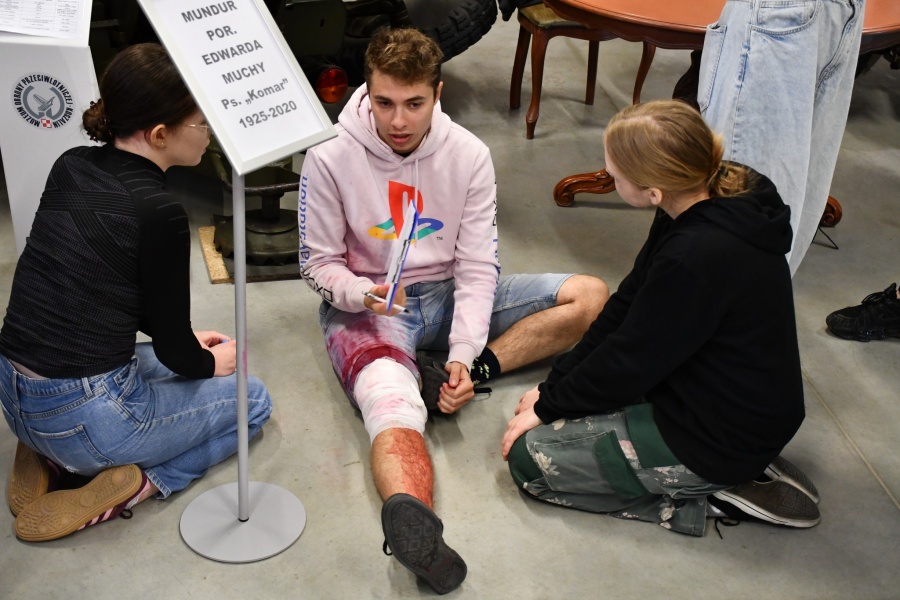 W sobotnie przedpołudnie muzealna przestrzeń stała się areną zmagań młodzieżowych drużyn ze szkół średnich w Koszalinie. Uczniowie musieli zmierzyć się z przygotowanymi scenkami, które sprawdzały ich wiedzę, opanowanie i praktyczne umiejętności udzielania pierwszej pomocy.