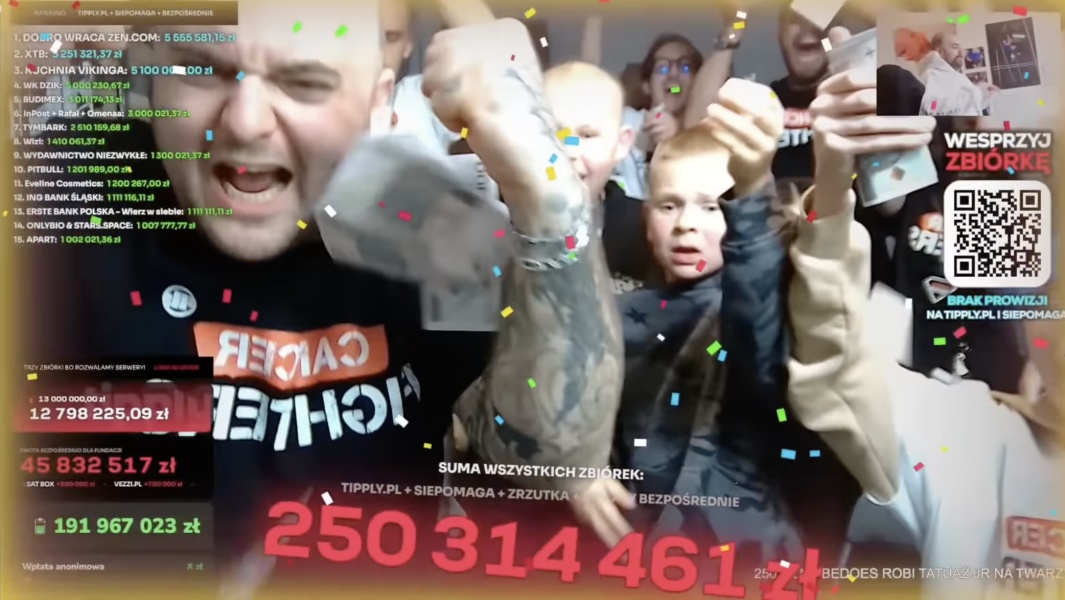 Im dalej w stream, tym bardziej wszystko wymykało się wyobraźni. W niedzielny poranek licznik przekroczył 100 mln złotych; w okolicy godziny 19 było już 200 mln. Przed 21.00 padła bariera ćwierć miliarda – ponad 250 mln złotych. W ostatnich minutach transmisji kwota dobiła do 251 mln zł. Dla porównania: tyle mniej więcej wynosi roczny budżet kilku średnich polskich gmin. Na żywo wydarzenie śledziło ponad 1,4 mln osób, a charytatywny stream ustanowił rekord Guinnessa jako największy na świecie – żaden amerykański czy azjatycki serwis nie zebrał wcześniej tak ogromnych sum w tak krótkim czasie.
