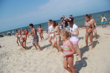 W kolejny upalny dzień na mieleńskiej plaży wielbiciele tańca mogli się poruszać w szybkich zumbowych rytmach. Kilka tanecznych sesji poprowadziła koszalinianka - Wiola Kamińska, która przyznała, że bardzo ciężko jest tańczyć w taki upał, w dodatku na piasku. Jednak mimo kłopotów chętnych do wspólnej zabawy nie brakowało.