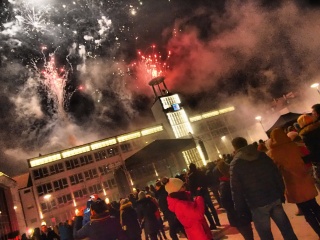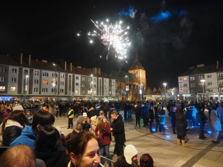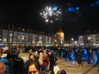 Parę tysięcy koszalinian powitało Nowy Rok przed ratuszem. Na scenie wystąpił zespół Raggafaya oraz raper K2. Chwilę przed północą prezydent miasta Piotr Jedliński, złożył mieszkańcom życzenia i zaprosił na pokaz sztucznych ogni. Było gwarnie, głośno… i wystrzałowo. Nad bezpieczeństwem czuwała spora grupa pracowników ochrony. Obyło się bez ekscesów. Zapraszamy do galerii.