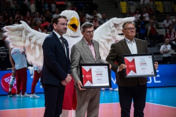 W przerwie meczu Polska – Francja uhonorowano również Zdzisława Gogola oraz Jana Staniuchę, trenerów zasłużonych dla polskiej siatkówki młodzieżowej, którym wręczono medale Zasłużonego Trenera.