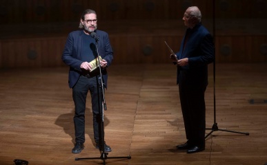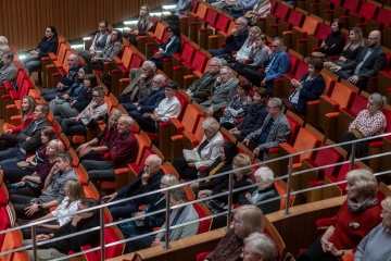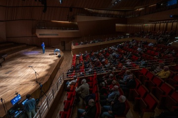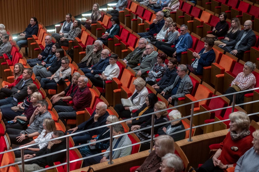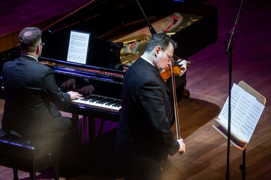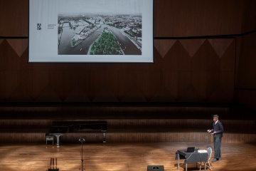Publiczność miała okazję uczestniczyć w niezwykłym koncercie duetu Adam Vogelsinger (skrzypce) i Piotr Grelowski (fortepian). Artyści zaprezentowali repertuar pełen emocji, subtelności i wirtuozerii – utwory Fritza Kreislera, austriackiego kompozytora i skrzypka, który w swojej twórczości łączył klasyczną elegancję z romantycznym brzmieniem. Ich interpretacje poruszyły słuchaczy, tworząc muzyczną przestrzeń pełną harmonii – doskonale wpisującą się w ideę cyklu, który pokazuje, jak architektura i muzyka wzajemnie się przenikają i jak obie dziedziny mogą budować emocje. Drugą część spotkania wypełnił inspirujący wykład arch. Zbigniewa Maćkówa zatytułowany „Muzyka miasta. Miasto przyszłości: cyfrowe, sprawiedliwe, ekologiczne”.