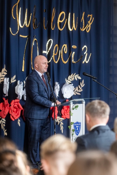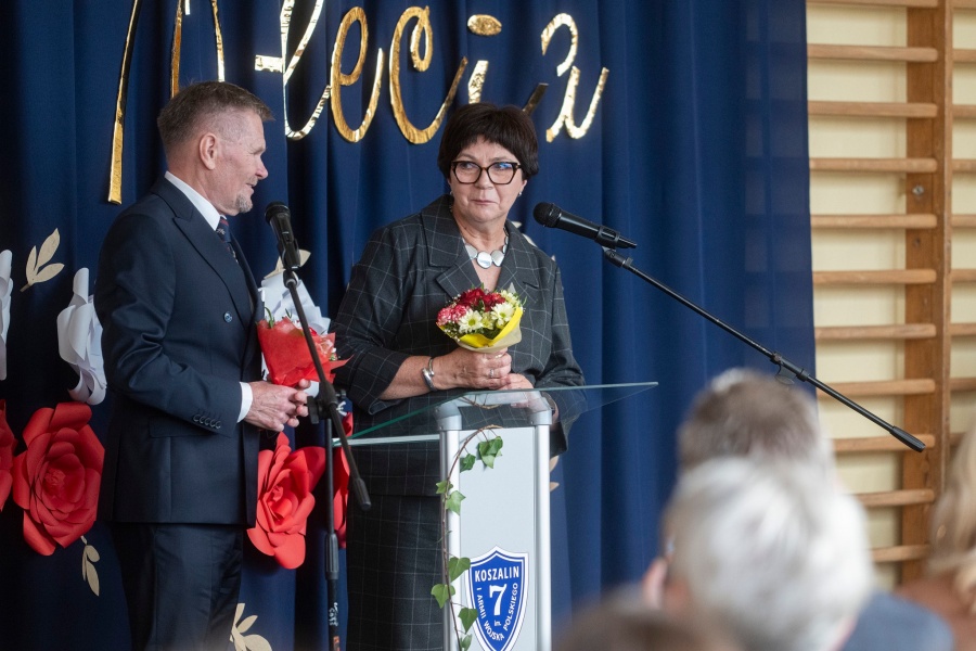 Dzisiejszy jubileusz to wyjątkowy moment w historii Koszalina – pełen wspomnień, emocji i dumy z dorobku, który przez siedemdziesiąt lat tworzyli nauczyciele, uczniowie i rodzice. Szkoła Podstawowa nr 7 to nie tylko mury i sale lekcyjne – to miejsce, w którym od pokoleń kształtują się młodzi koszalinianie, gdzie nauka łączy się z wychowaniem, a tradycja z nowoczesnością. To tutaj rodzą się przyjaźnie, pasje i wartości, które pozostają z uczniami na całe życie. Z okazji jubileuszu całej społeczności Szkoły Podstawowej nr 7 życzymy nieustającego entuzjazmu, radości z codziennej pracy, wielu sukcesów edukacyjnych oraz satysfakcji z wychowywania kolejnych pokoleń młodych koszalinian.