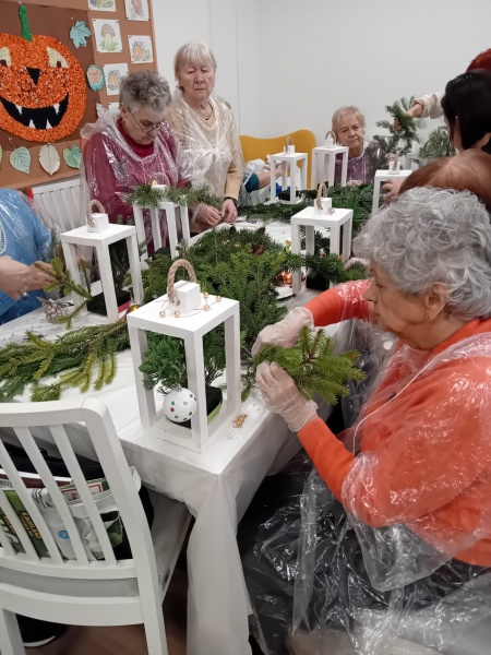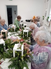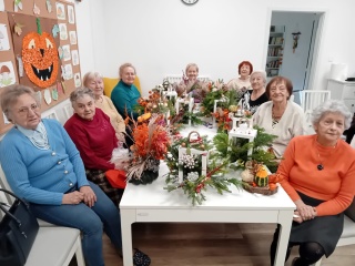 Seniorzy tworzyli jesienne i świąteczne kompozycje. Warsztaty florystyczne pełne kolorów i kreatywności