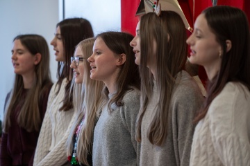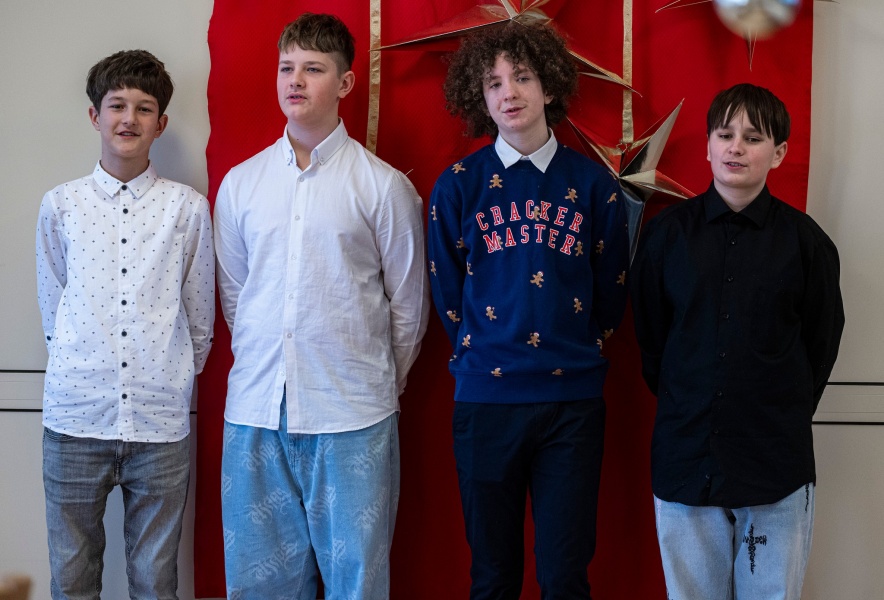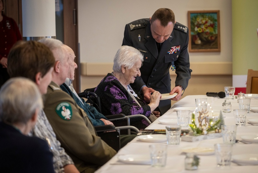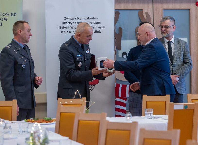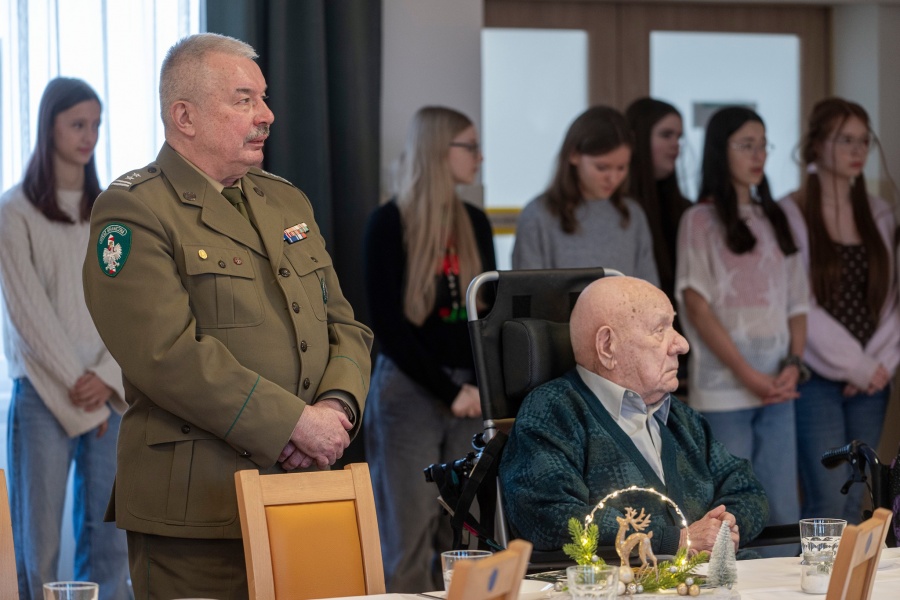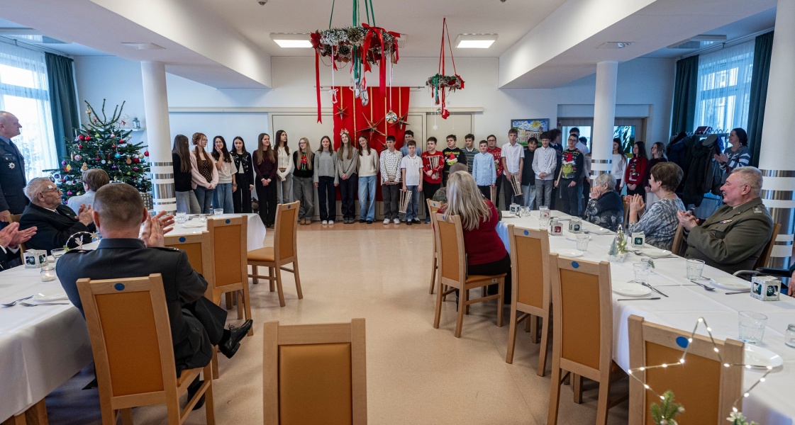 Za nami wyjątkowe, pełne ciepła i wzruszeń spotkanie wigilijne z Kombatantami. Wspólne rozmowy, życzenia oraz świąteczna oprawa stworzyły atmosferę, w której szczególnie mocno wybrzmiały wartości pamięci, wdzięczności i międzypokoleniowej bliskości. Wyjątkowym momentem spotkania był występ uczniów klasy 7B Szkoły Podstawowej nr 18 im. Jana Matejki w Koszalinie. Młodzież wprowadziła wszystkich w prawdziwie bożonarodzeniowy nastrój, wykonując piękne kolędy, które spotkały się z bardzo ciepłym przyjęciem i gromkimi brawami. Uczniowie przybyli wraz z wychowawcą, panią Magdaleną Periżok-Kowalczyk, a także panią Magdaleną Ochenkowską, które wspierały młodzież podczas wizyty i wspólnego kolędowania. Ich obecność była ważnym elementem wydarzenia — podkreślała, jak istotne jest budowanie szacunku dla historii oraz pielęgnowanie tradycji wśród młodszych pokoleń.