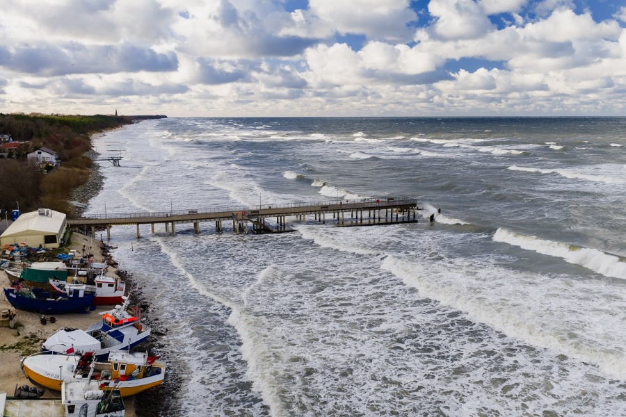 W Mielnie, gdzie promenada i plaża są naturalnym centrum spacerów, wzburzone morze przyciąga wzrok jak magnes. Fale rozbijające się o brzeg, piana unosząca się w powietrzu i wiatr, który „przestawia” kroki, tworzą krajobraz surowy, niemal filmowy. W Łazach – bardziej kameralnych, spokojniejszych, otoczonych lasem i wydmami – żywioł działa inaczej: jest bliżej natury, mniej „miejski”, bardziej dziki. To miejsce, gdzie morze potrafi brzmieć jak ciągły grzmot, a wiatr w koronach drzew dopełnia wrażenia, że jesteśmy tylko gośćmi.