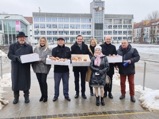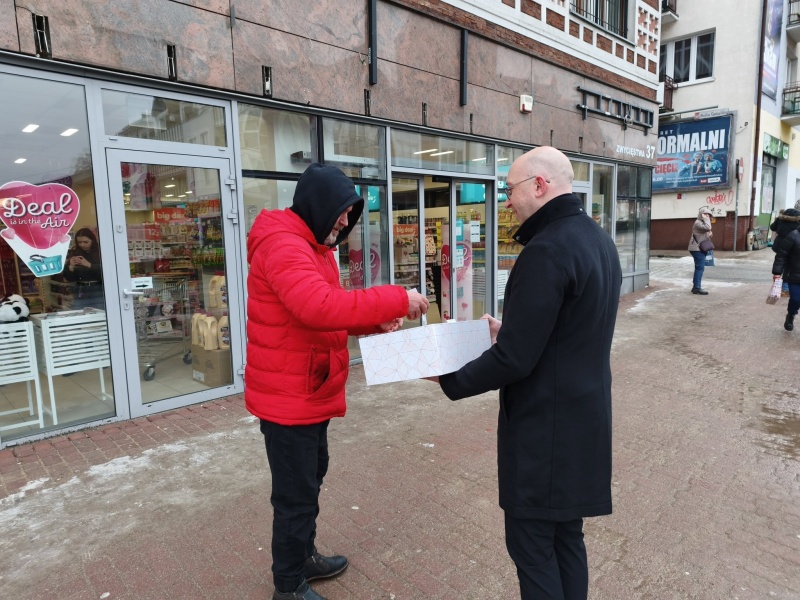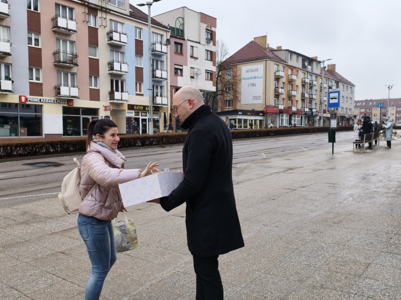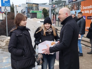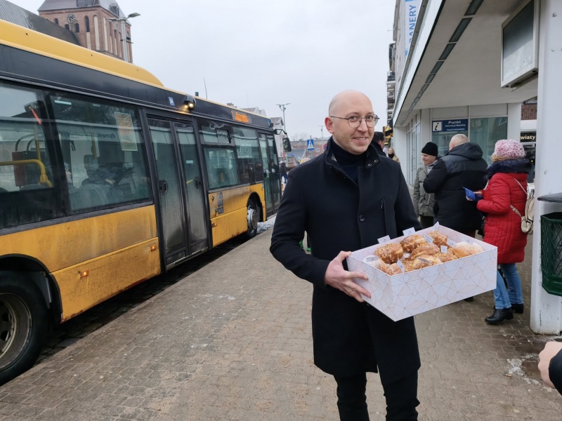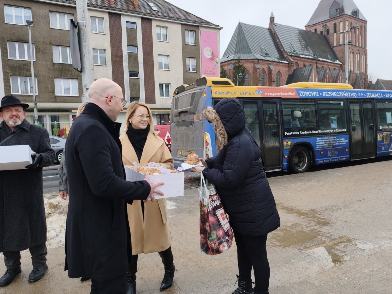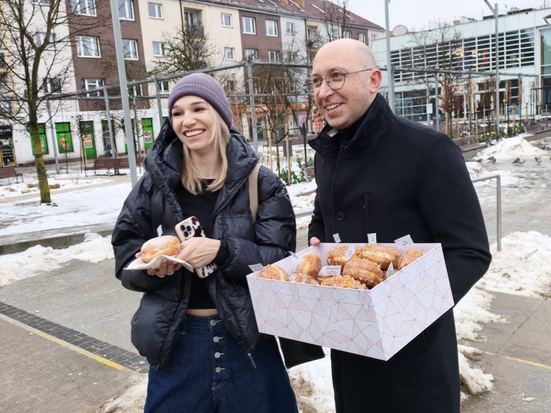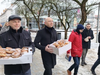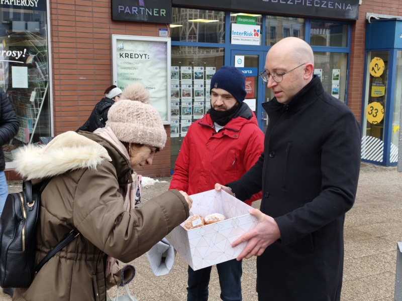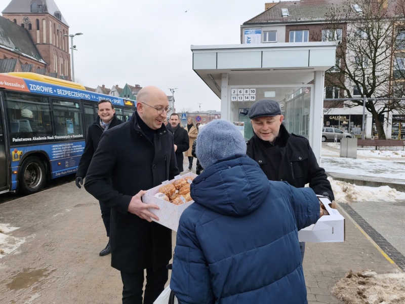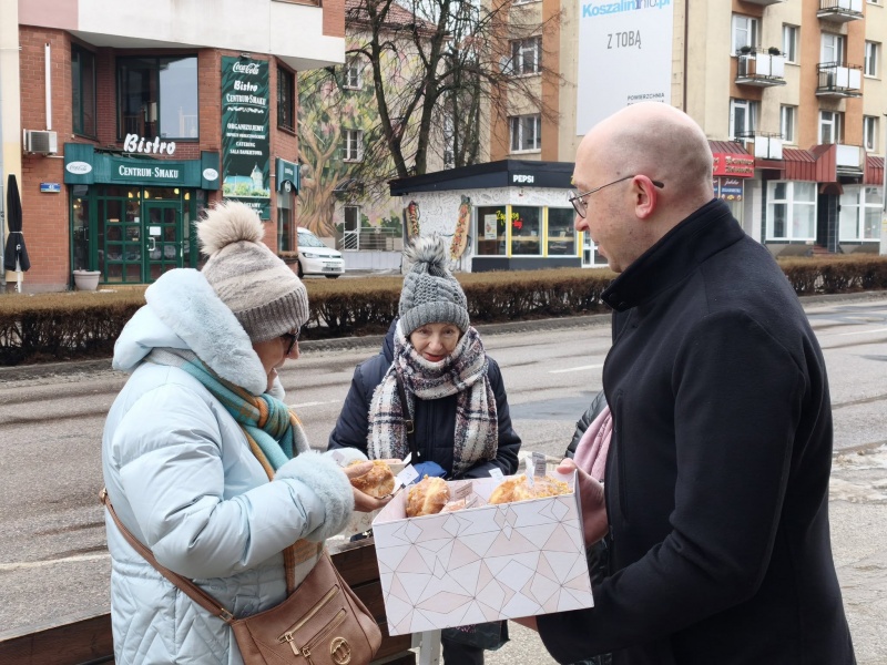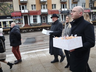Tłusty Czwartek po koszalińsku. Samorządowcy częstowali mieszkańców pączkami