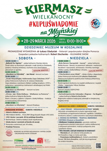 Przed Koszalinem wyjątkowo smakowity i świąteczny weekend. Już 28 i 29 marca na dziedzińcu Muzeum w Koszalinie odbędzie się Kiermasz Wielkanocny #KupujŚwiadomie na Młyńskiej. W godzinach 10.00–18.00 na mieszkańców i gości czekać będą regionalni wystawcy, Koła Gospodyń Wiejskich, pokazy kulinarne, koncerty, konkursy, warsztaty i animacje dla dzieci.