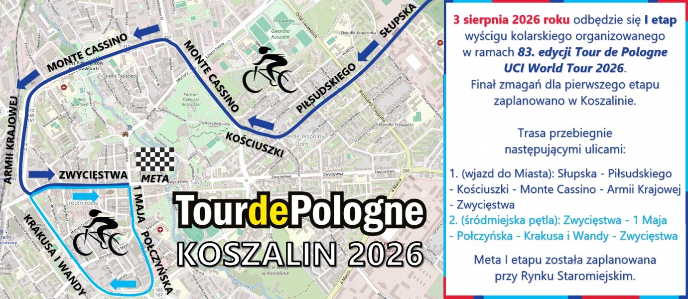 Dla Koszalina szczególnie istotna jest informacja dotycząca tegorocznego Tour de Pologne 2026. Pierwszy etap wyścigu, którego start zaplanowano na 2 sierpnia, poprowadzi z Gdyni – świętującej w tym roku swoje 100-lecie – do Koszalina. Na trasie pojawią się 22 ekipy, 170 zawodników, a kolarze będą mieli do pokonania 240 kilometrów.