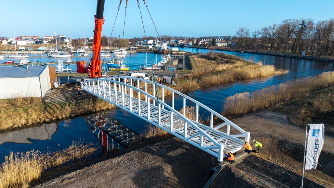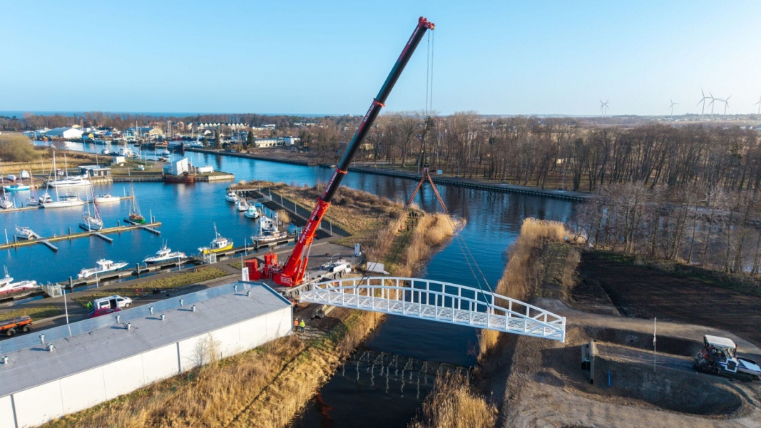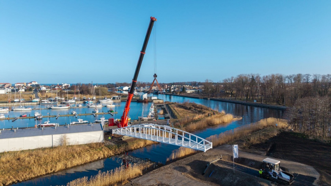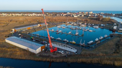 W Darłowie rozpoczął się montaż konstrukcji nowego mostu pieszo-rowerowego, który połączy dwie części portu po zachodniej stronie miasta. To ważny etap inwestycji realizowanej w ramach projektu modernizacji i rozbudowy infrastruktury portowej na potrzeby obsługi morskich farm wiatrowych.