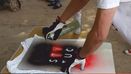 Malowanie rozpoczniemy w samo południe, w niedzielę 2 września na Rynku Staromiejskim w Koszalinie. Czarno-czerwone napisy będziemy umieszczali na koszłemPomnikulkach przyniesionych przez ich właścicieli. Dobrze by było, żeby były one na tyle jasne, by napis był na nich widoczny, a najlepiej białe.