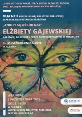 Filia nr 8 Koszalińskiej Biblioteki Publicznej zaprasza na wystawę malarstwa „Elly" Elżbiety Gajewskiej pt. „Anioły są wśród nas". Artystka należy do Zespołu Pracy Twórczej Plastyki w Koszalinie. Wernisaż wystawy odbędzie się w dniu 3 października 2019 r. o godz. 16.30 przy ul. Andersa 4-6. Wystawa będzie dostępna dla zwiedzających do 31 października. Zapraszamy serdecznie.